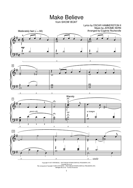 Digital Sheet Music for Make Believe by Jerome Kern, Oscar Hammerstein II, Eugénie R. Rocherolle scored for Piano; id:381819