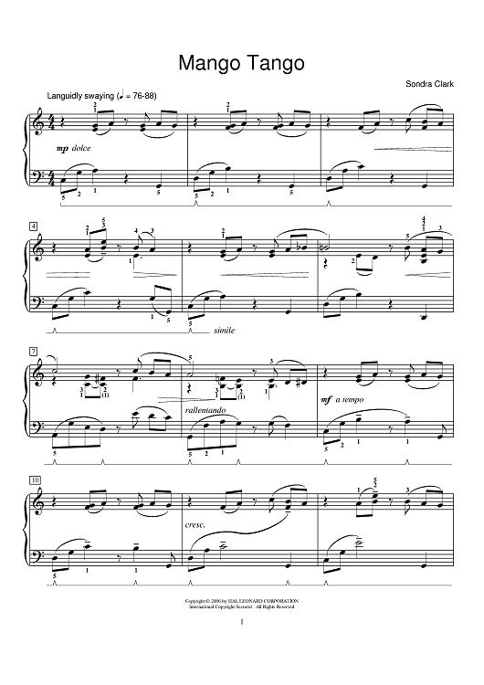 Digital Sheet Music for Mango Tango by Sondra Clark scored for Piano; id:394595