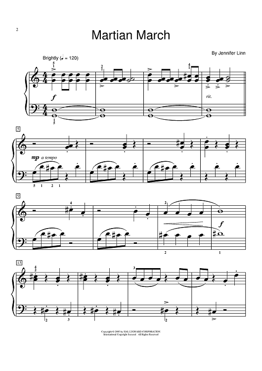 Digital Sheet Music for Martian March by Jennifer Linn scored for Piano; id:384148