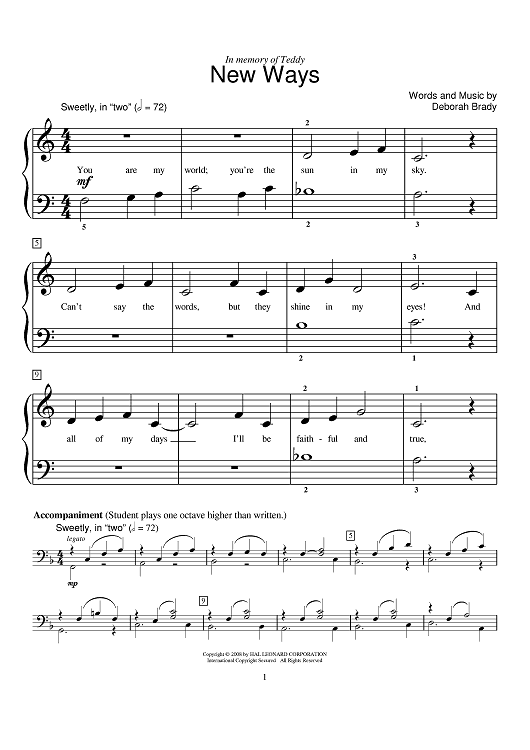 Digital Sheet Music for New Ways by Deborah Brady scored for Piano; id:402618
