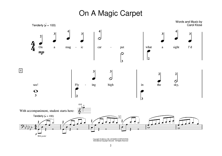 Digital Sheet Music for On A Magic Carpet by Carol Klose scored for Piano; id:373525