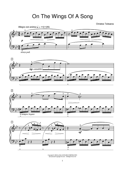 Digital Sheet Music for On The Wings Of A Song by Christos Tsitsaros scored for Piano; id:375213
