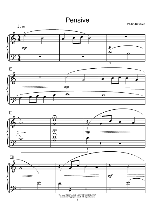 Digital Sheet Music for Pensive by Phillip Keveren scored for Piano; id:402012