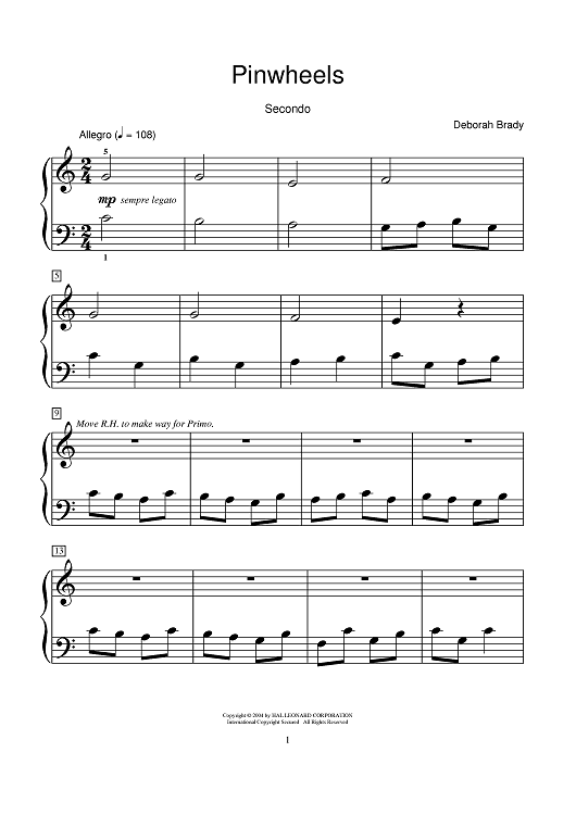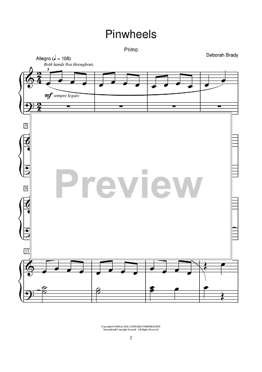 Digital Sheet Music for Pinwheels by Deborah Brady scored for 1 Piano, 4 Hands; id:374531