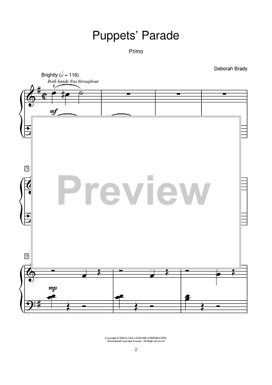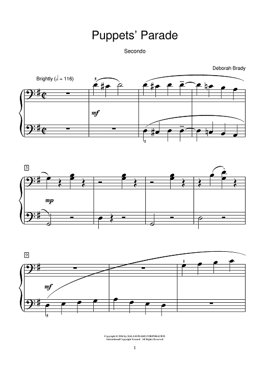 Digital Sheet Music for Puppets' Parade by Deborah Brady scored for 1 Piano, 4 Hands; id:374532