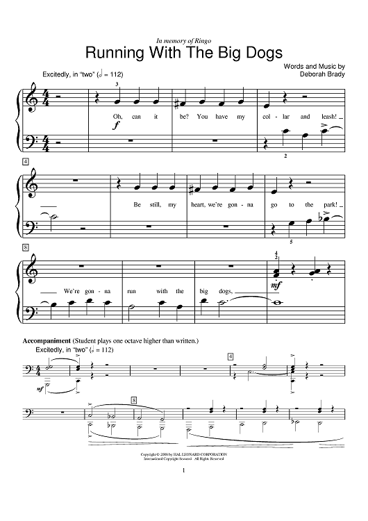 Digital Sheet Music for Running With The Big Dogs by Deborah Brady scored for Piano; id:402621