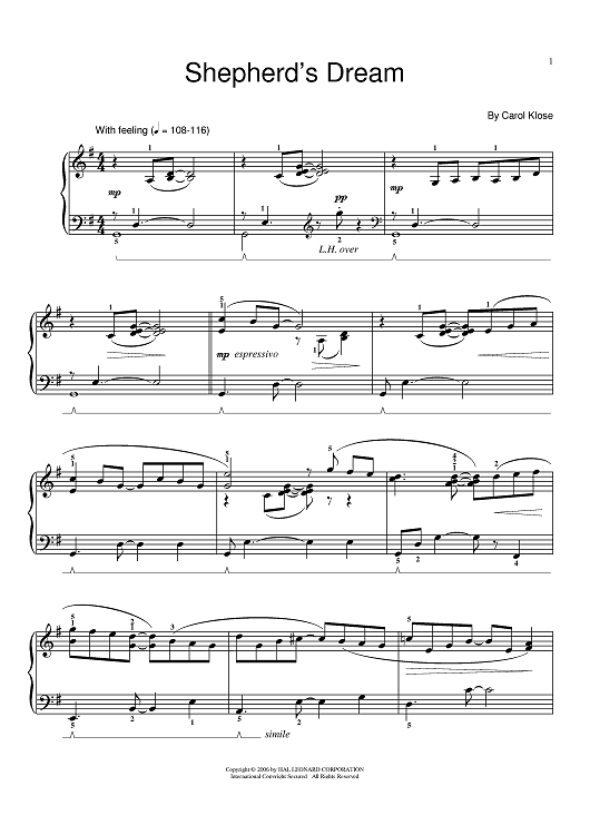"Shepherd's Dream" Sheet Music by Carol Klose