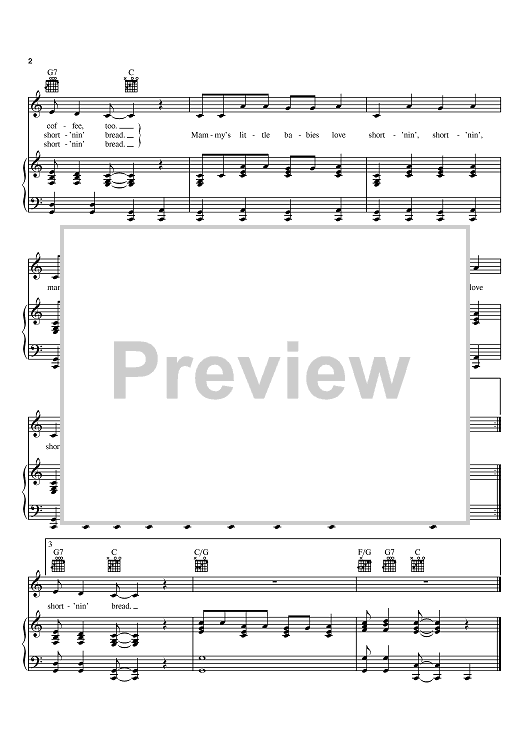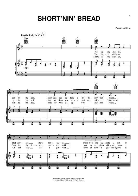 Digital Sheet Music for Short'nin' Bread by Plantation Song scored for Piano/Vocal/Chords; id:368391