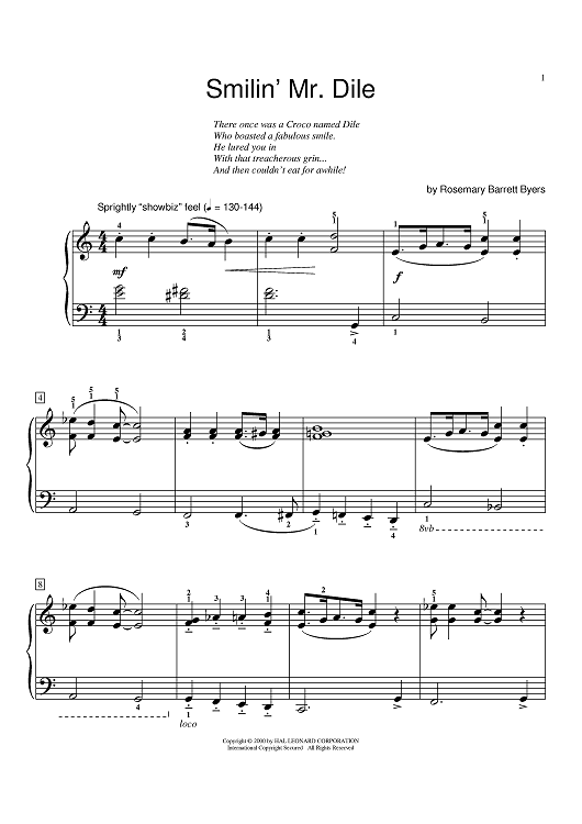 Digital Sheet Music for Smilin' Mr. Dile by Rosemary Barrett Byers scored for Piano; id:373475