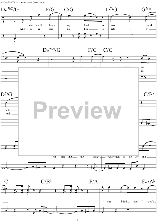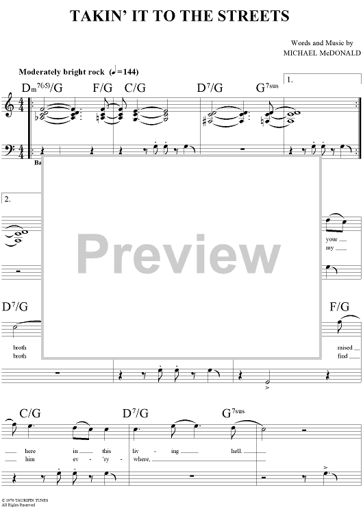 Digital Sheet Music for Takin' It to the Streets by Michael McDonald, The Doobie Brothers scored for Lead Sheet; id:293783