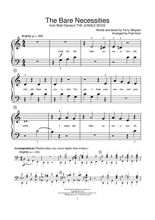 Digital Sheet Music for The Bare Necessities by Terry Gilkyson scored for Piano; id:387077
