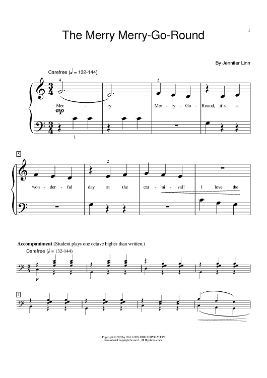 Digital Sheet Music for The Merry Merry-Go-Round by Jennifer Linn scored for Easy Piano; id:383967