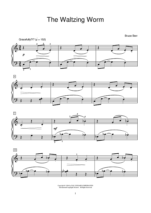 Digital Sheet Music for The Waltzing Worm by Bruce Berr scored for Piano; id:375015