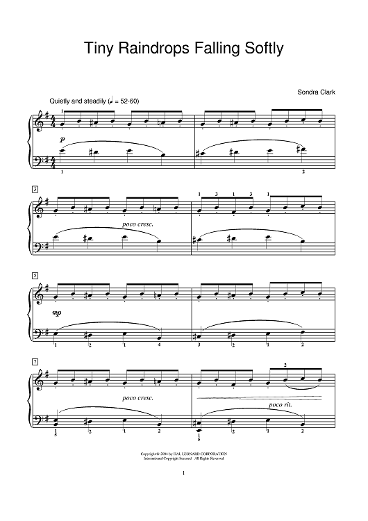 Digital Sheet Music for Tiny Raindrops Falling Softly by Sondra Clark scored for Piano; id:379147
