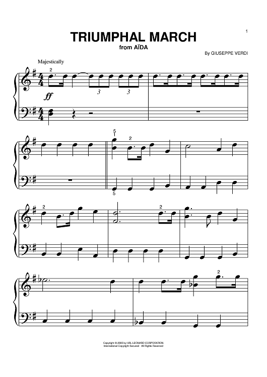 Digital Sheet Music for Triumphal March by Giuseppe Verdi scored for Big Note Piano; id:383134