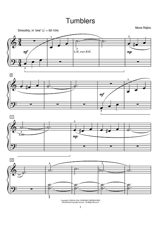 Digital Sheet Music for Tumblers by Mona Rejino scored for Piano; id:393580