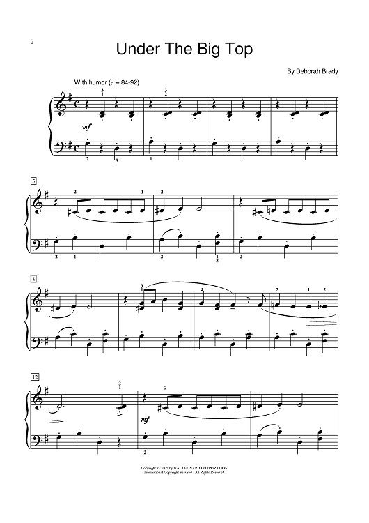 Digital Sheet Music for Under The Big Top by Deborah Brady scored for Piano; id:383968