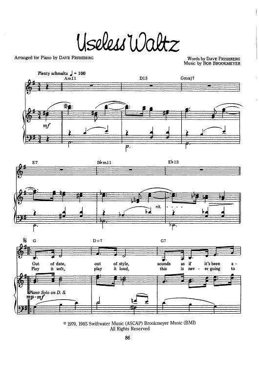 Digital Sheet Music for Useless Waltz by Dave Frishberg, Bob Brookmeyer scored for Piano/Vocal/Chords; id:429856