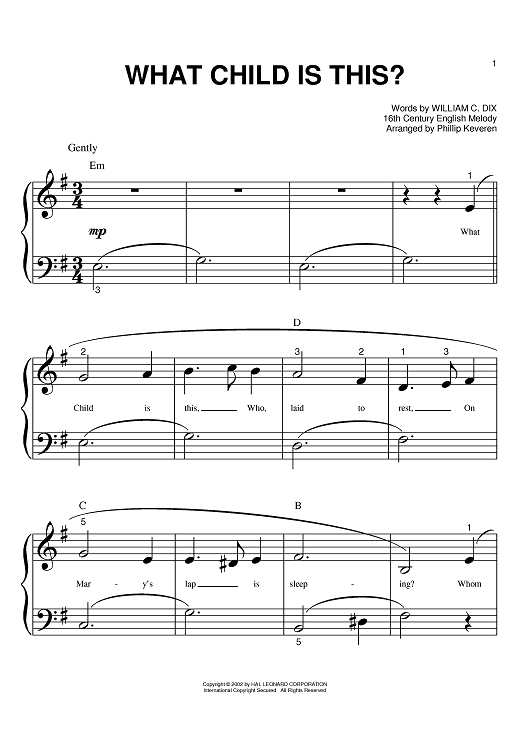 Digital Sheet Music for What Child Is This? by William C. Dix, Traditional, Phillip Keveren scored for Big Note Piano; id:396844