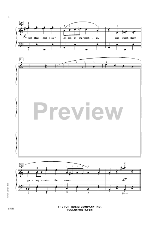This piece will become a Halloween classic to look forward to every season. With its cackling witches' laugh and musical shiver, it will delight performers and audiences.