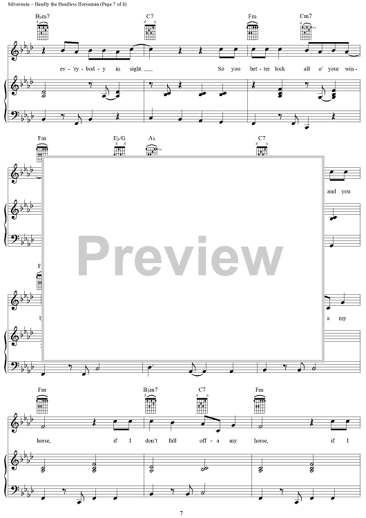 Digital Sheet Music for Headly, The Headless Horseman by Shel Silverstein, Dennis Morgan scored for Piano/Vocal/Chords; id:241899