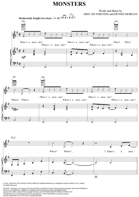 Digital Sheet Music for Monsters by Shel Silverstein, Dennis Morgan scored for Piano/Vocal/Chords; id:220404