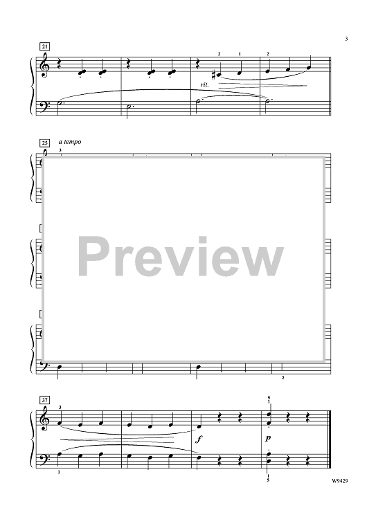 A piece that will haunt your student all year around! An extremely easy waltz where hands stay in D minor position except for one left-hand crossover to B flat (no key signature used, just accidentals). With easy right-hand/left-hand coordination, the melody floats between the hands.