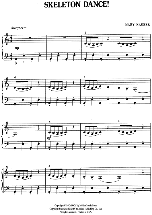 Digital Sheet Music for Skeleton Dance by Mary Hauber scored for Piano Solo; id:469897
