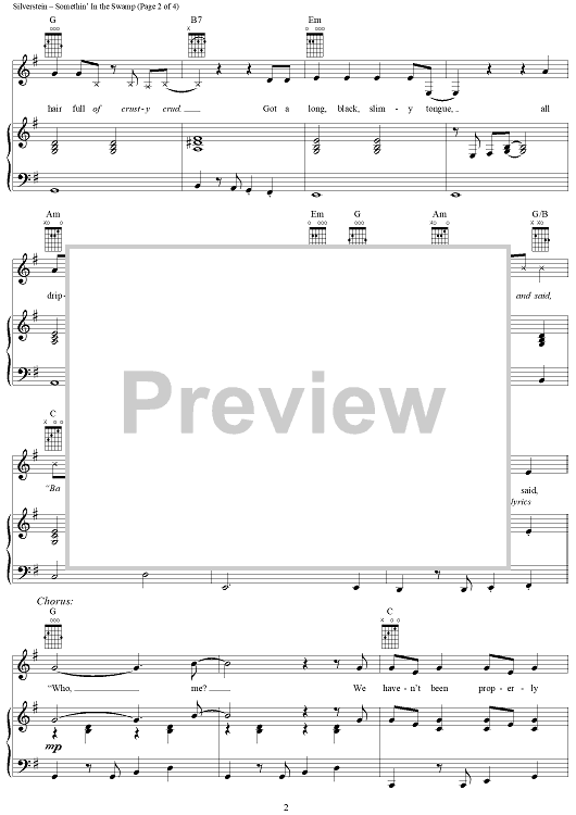 Digital Sheet Music for Somethin' In The Swamp by Shel Silverstein, Dennis Morgan scored for Piano/Vocal/Chords; id:241901