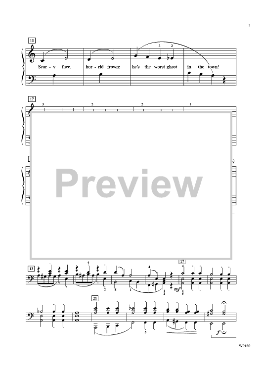Scary Halloween piece is about a ghost who has a horrid frown, makes screechy sounds, and can pass through trees. Featuring accidentals and tremolo for dramatic effect, elementary students will be smitten with the colorful sounds.