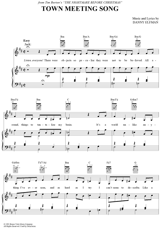 Digital Sheet Music for Town Meeting Song by Danny Elfman scored for Piano/Vocal/Chords; id:366889