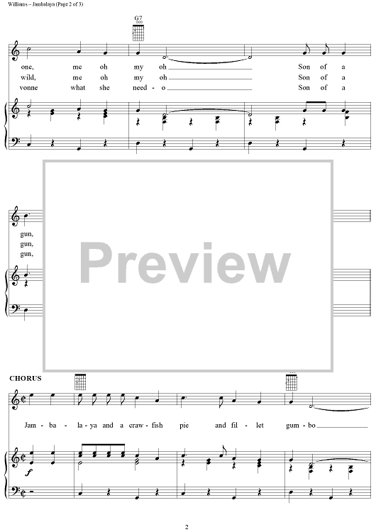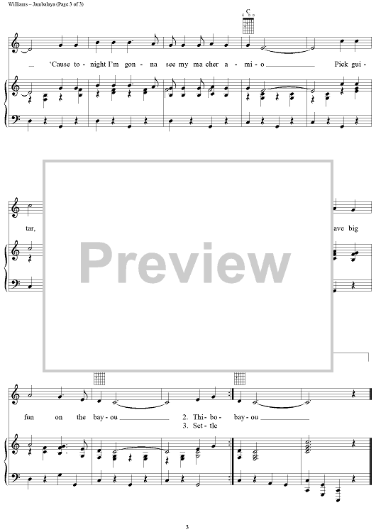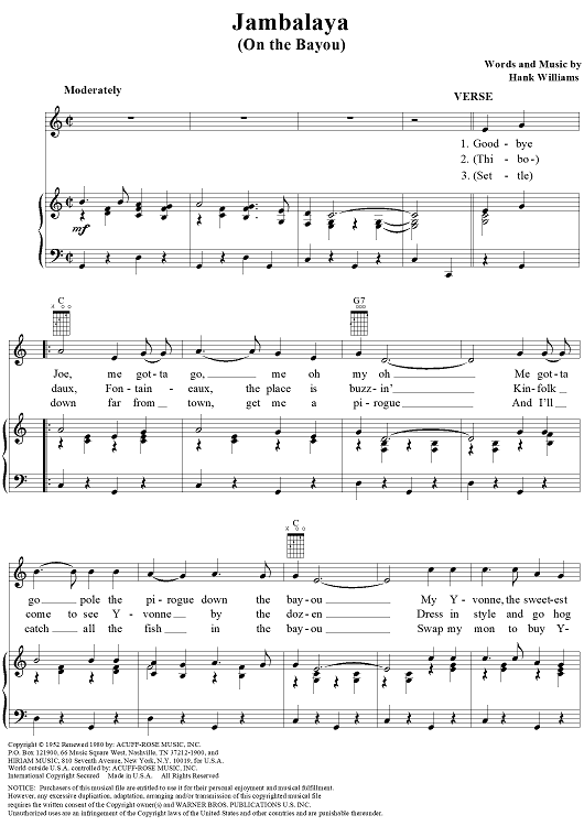 Digital Sheet Music for Jambalaya (On The Bayou) by Hank Williams scored for Piano/Vocal/Chords; id:95611