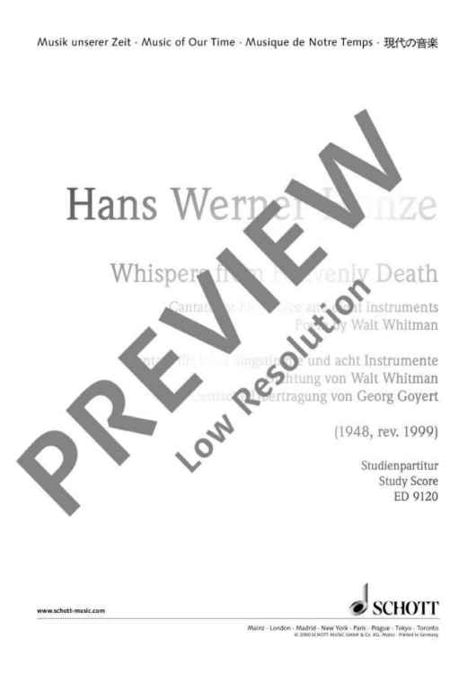 Digital Sheet Music for Whispers from Heavenly Death - Full Score by Hans Werner Henze scored for High Voice And 8 Instrumentalisten; id:474039