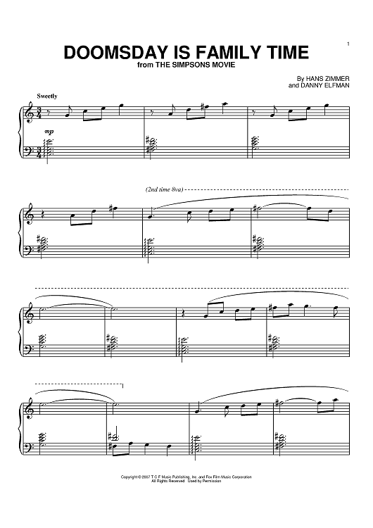 "Doomsday Is Family Time" Sheet Music by Danny Elfman