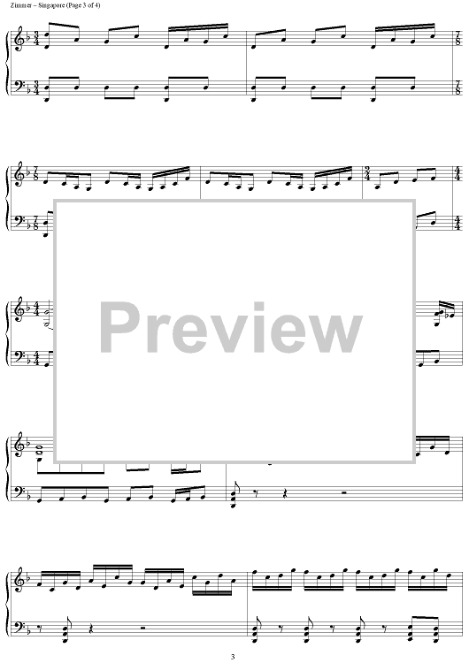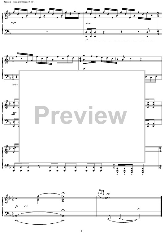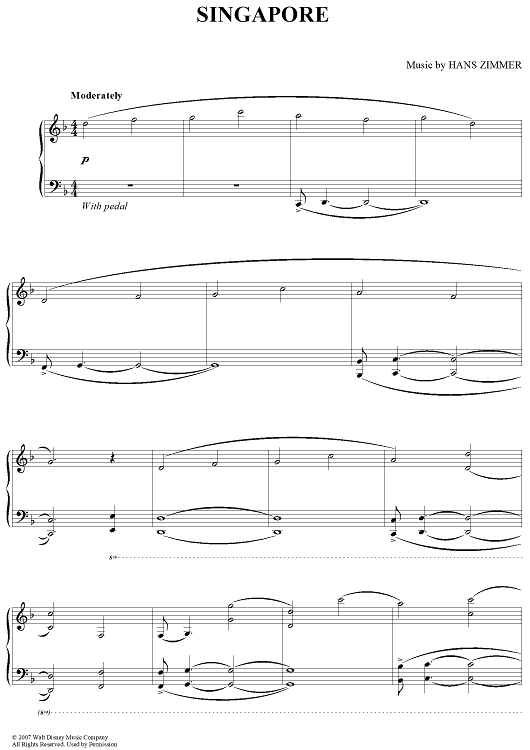 Digital Sheet Music for Singapore by Hans Zimmer scored for Piano Solo; id:398053
