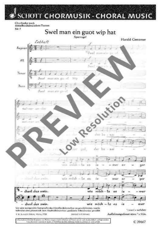 Digital Sheet Music for Fünf Chorlieder - Choral Score by Harald Genzmer scored for Mixed Choir (satb); id:479313