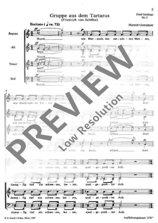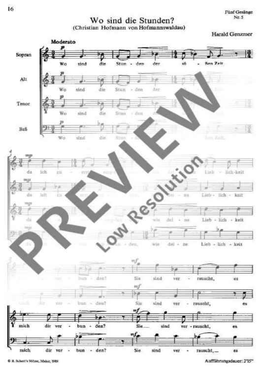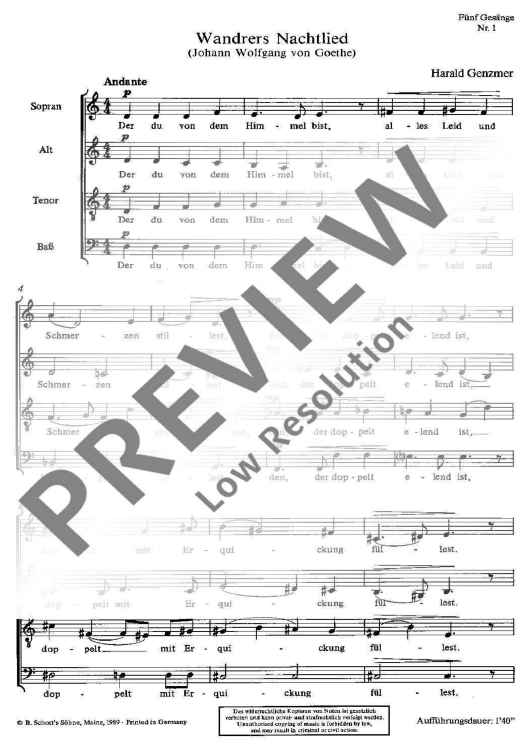Digital Sheet Music for Fünf Gesänge - Choral Score by Harald Genzmer scored for Mixed Choir (satb); id:479447