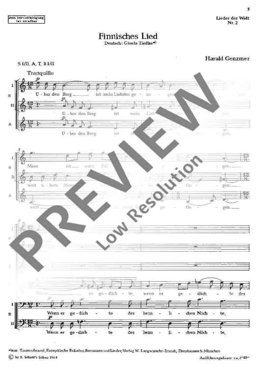 Digital Sheet Music for Lieder der Welt - Choral Score by Harald Genzmer scored for Mixed Choir; id:479627