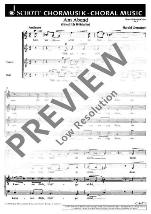 Digital Sheet Music for Sieben Hölderlin-Chöre - Choral Score by Harald Genzmer scored for Mixed Choir (satb); id:471802