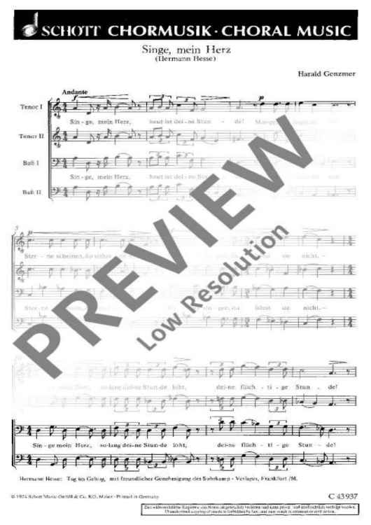 Digital Sheet Music for Singe mein Herz - Choral Score by Harald Genzmer scored for Men's Choir (ttbb); id:471735