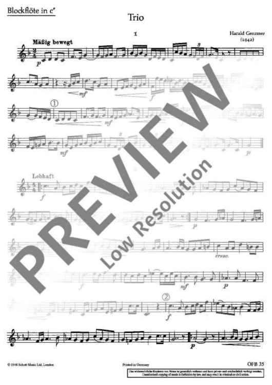 "Trio - Score and Parts" Sheet Music by Harald Genzmer