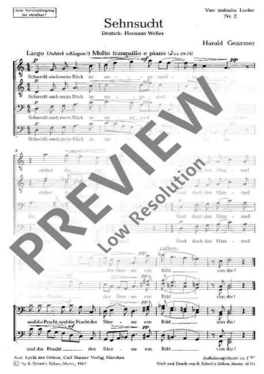 "Vier indische Lieder - Choral Score" Sheet Music by Harald Genzmer