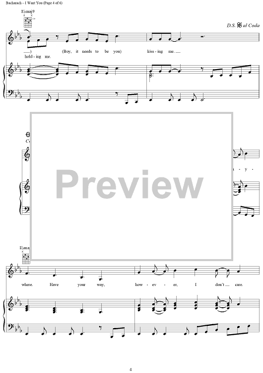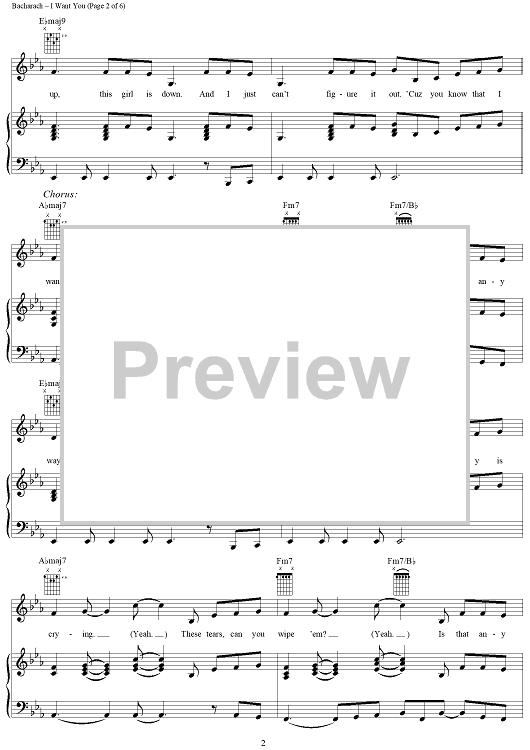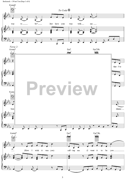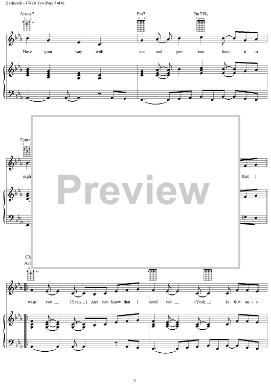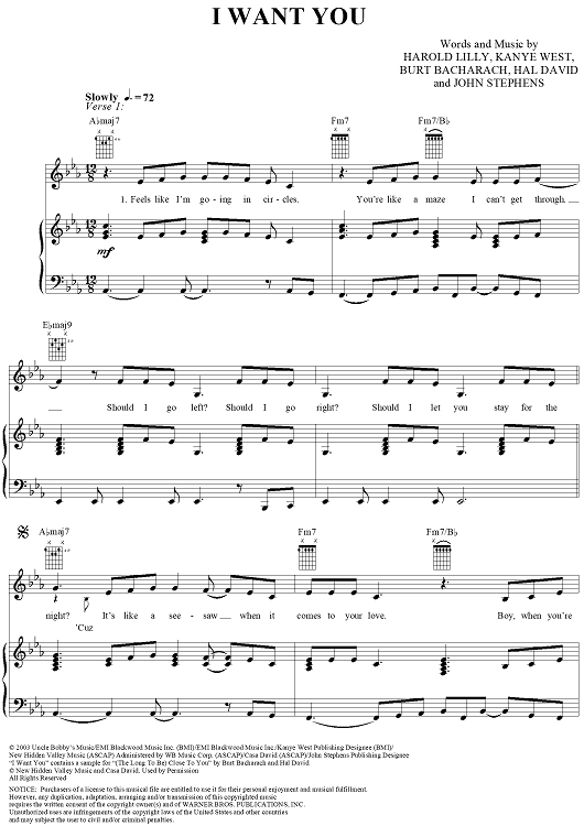 Digital Sheet Music for I Want You by Hal David, Janet Jackson, Burt Bacharach, Harold Lilly Jr, Kanye West, John Legend scored for Piano/Vocal/Chords; id:308233