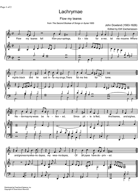 Digital Sheet Music for Lachrymae Flow My Teares by John Dowland, Eilif Zachariassen scored for Voice/Piano or Organ or Harpsichord; id:325576