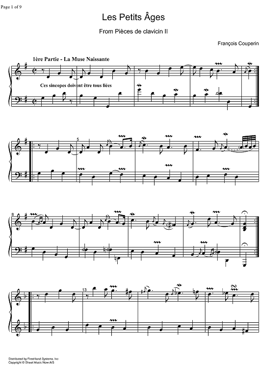 Digital Sheet Music for Pièces de clavecin 7th ordre, Les Petits Âges by Francois Couperin scored for Harpsichord; id:322304