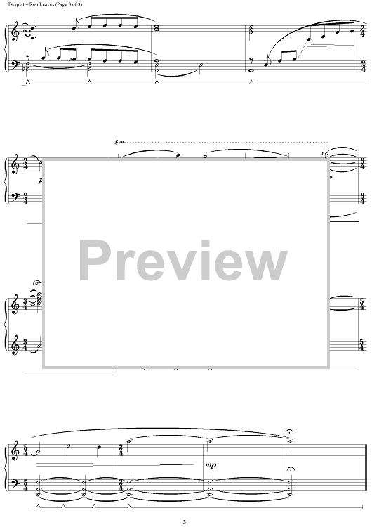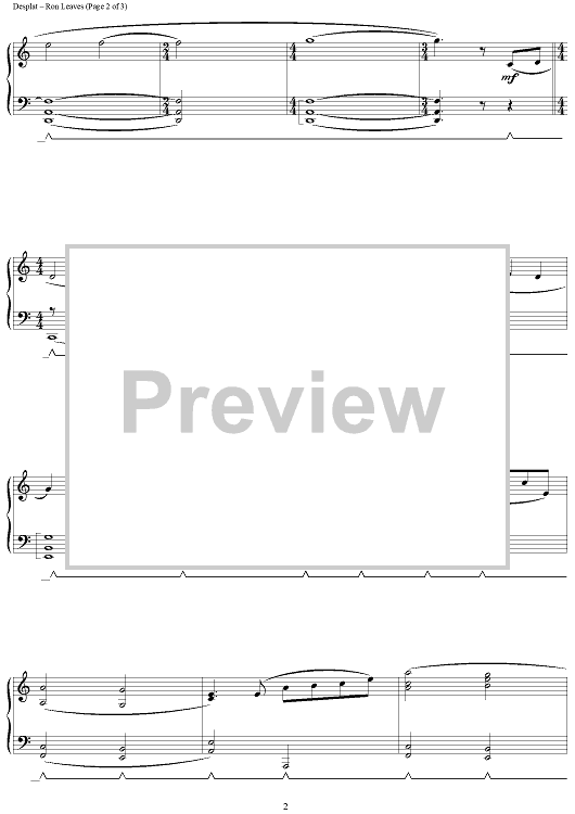 Digital Sheet Music for Ron Leaves by Alexandre Desplat scored for Piano Solo; id:418351