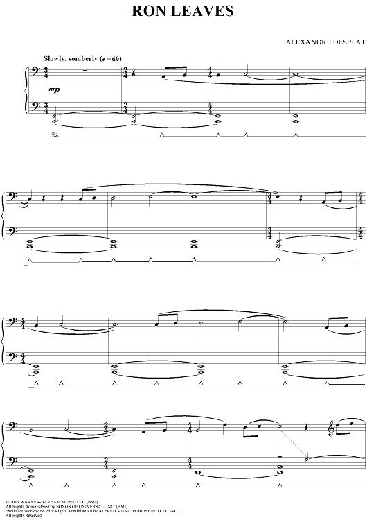 "Ron Leaves" Sheet Music by Alexandre Desplat