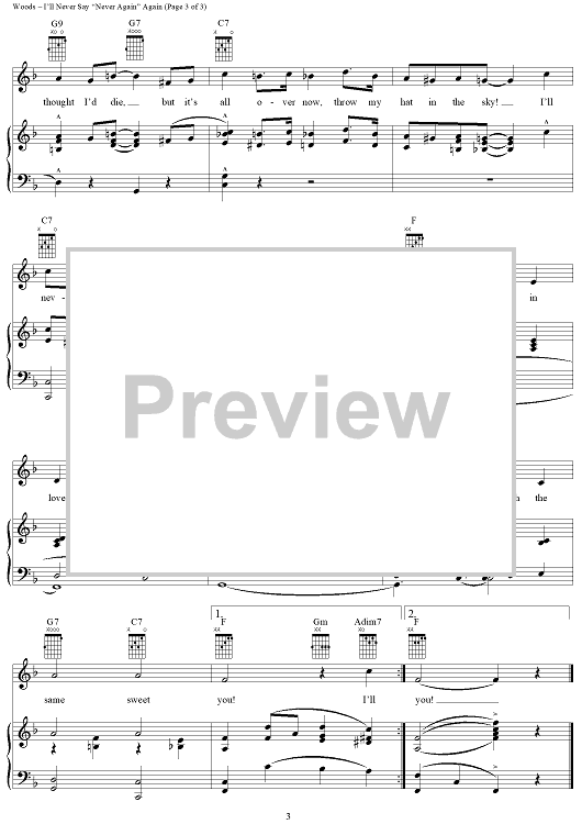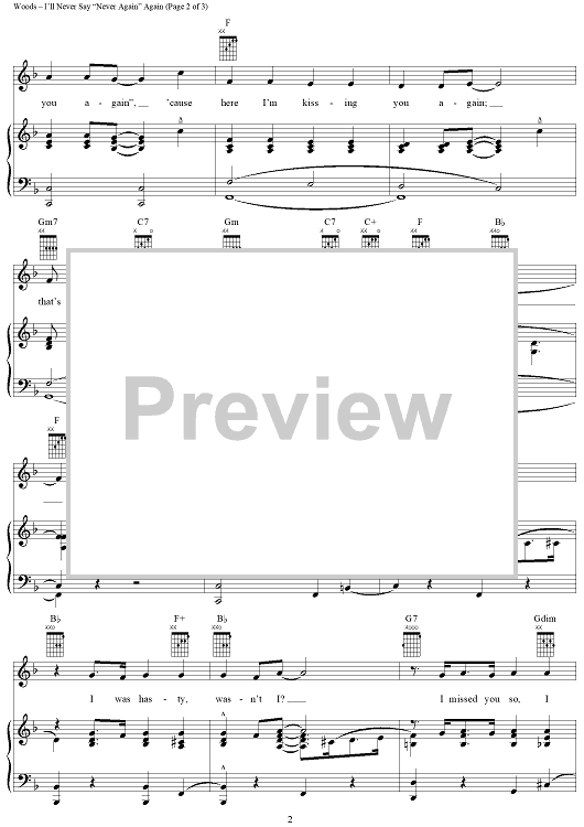 Digital Sheet Music for I'll Never Say "Never Again" Again by Harry Woods scored for Piano/Vocal/Chords; id:263471