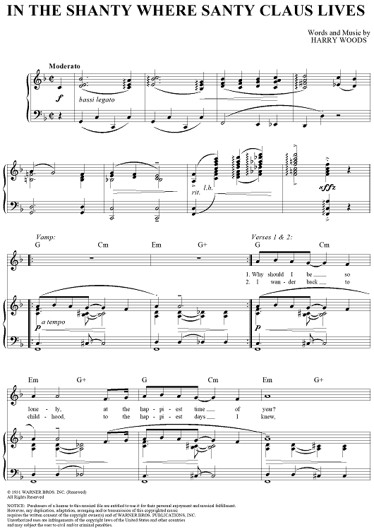 Digital Sheet Music for In the Shanty Where Santy Claus Lives by Harry Woods scored for Piano/Vocal/Chords; id:264159