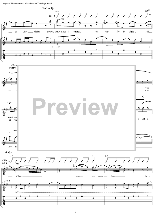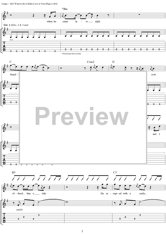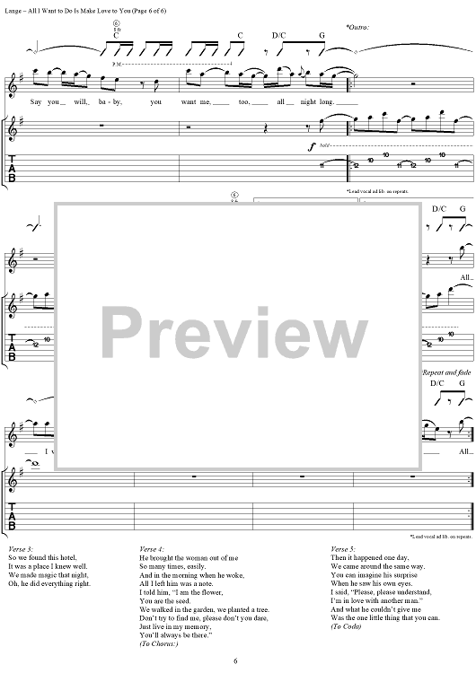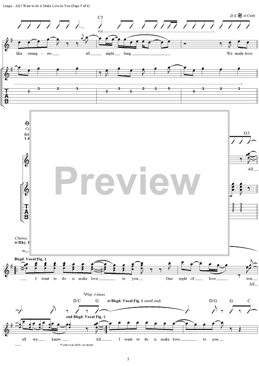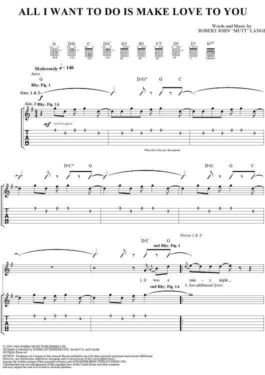 Digital Sheet Music for All I Want to Do is Make Love to You by Heart, Robert Lange scored for Guitar Tab/Vocal; id:250211